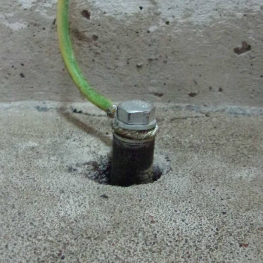 Там, где полоса будет выходить на фундамент на высоте 0.3–1 мот земли, необходимо приварить болт М12 (М14) к которому в дальнейшем будет подключено заземления дома.