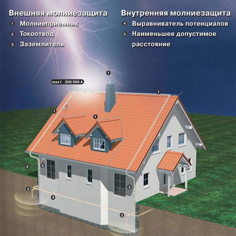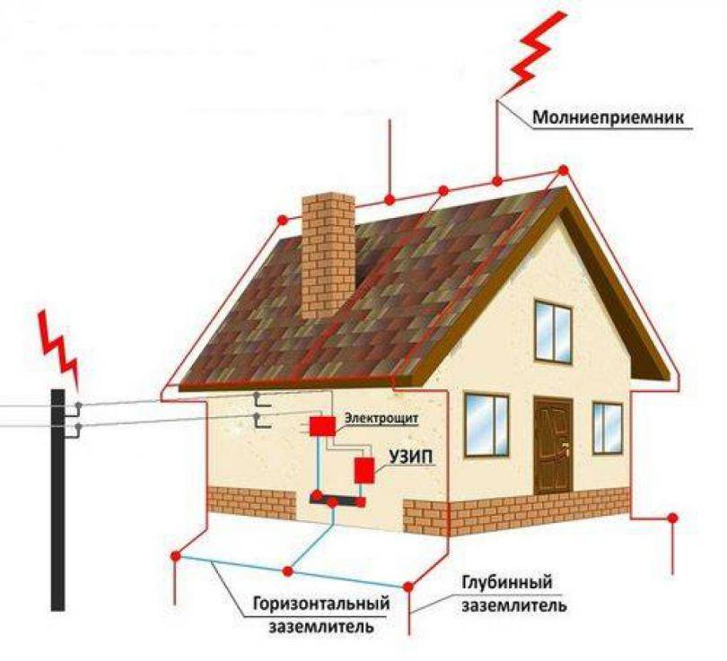 Заземление как мера обеспечения безопасности при использовании различных видов электроприборов делится на защитное и рабочее, кроме того, особняком стоит и молниезащита, подключать которую с землей необходимо с помощью отдельного контура. Использование общего заземления не рекомендуется, так как в этом случае при попадании молнии на громоотвод электричество будет вынужденно пройти через дом.