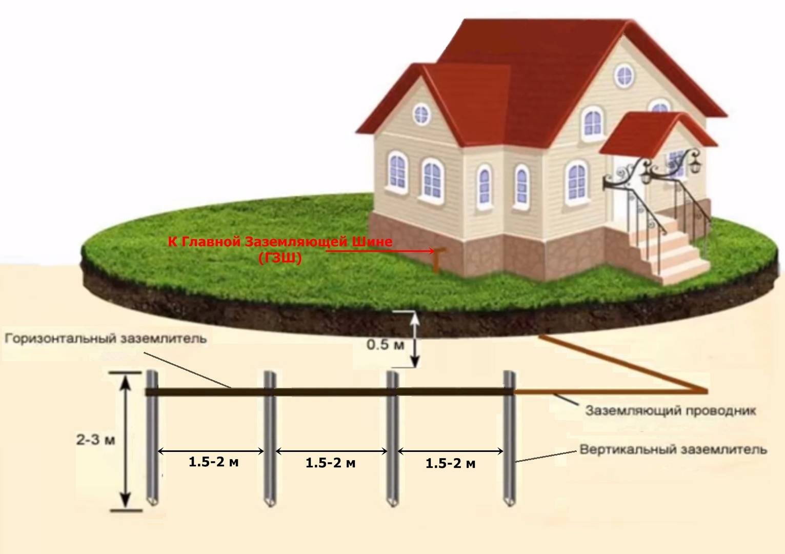 В большинстве случаев рекомендуется монтировать контур заземления на расстоянии в 1 м от фундамента здания в месте где оно будет скрыто от человеческого глаза и к которому будет сложно добраться как людям, так и животным.