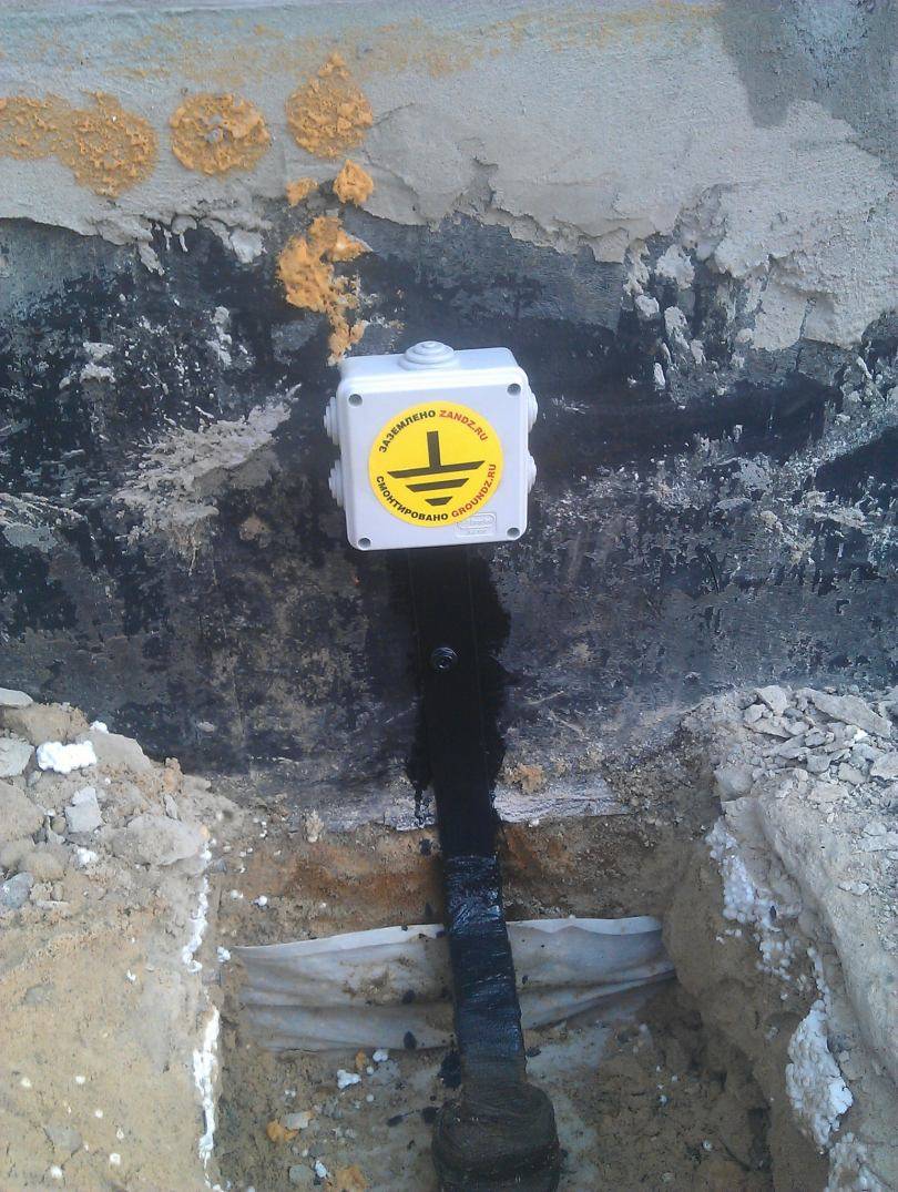 На выходящую наверх часть электрода устанавливают хомут с многожильным проводом для соединения с шиной внутренней части заземления дома, надевают оголовок для обслуживания. Изолируют места контактов специальной лентой из комплекта с гидрофобным покрытием. Времени уходит на монтаж – 3 часа.