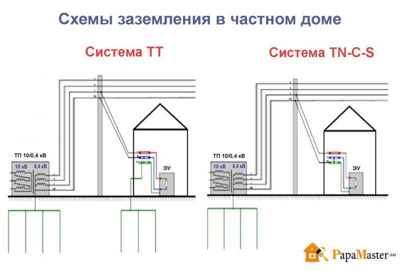 Для обеспечения заземления существует шесть систем заземления. В отдельных строительных сооружениях, в частности, жилых домах используют две основных системы заземления.