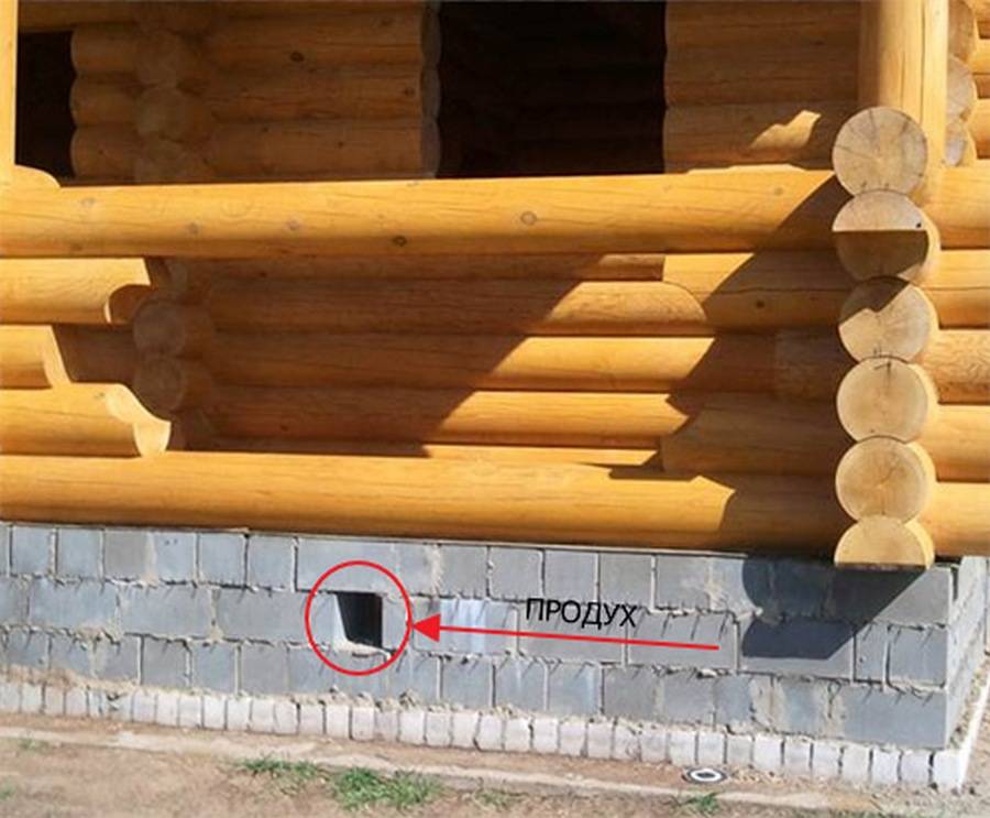- Сделать в фундаменте продухи (называют еще отдушины). В этом случае влага удаляется за счет сквозняка — вентиляционные отверстия располагаются в противоположных стенах.