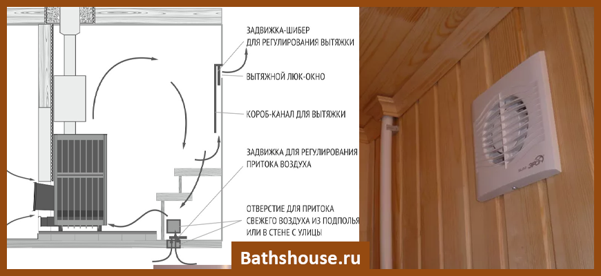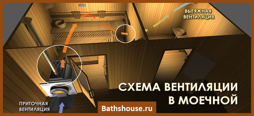 Профессионалы рекомендуют проводить вентиляцию по всему банному комплексу.