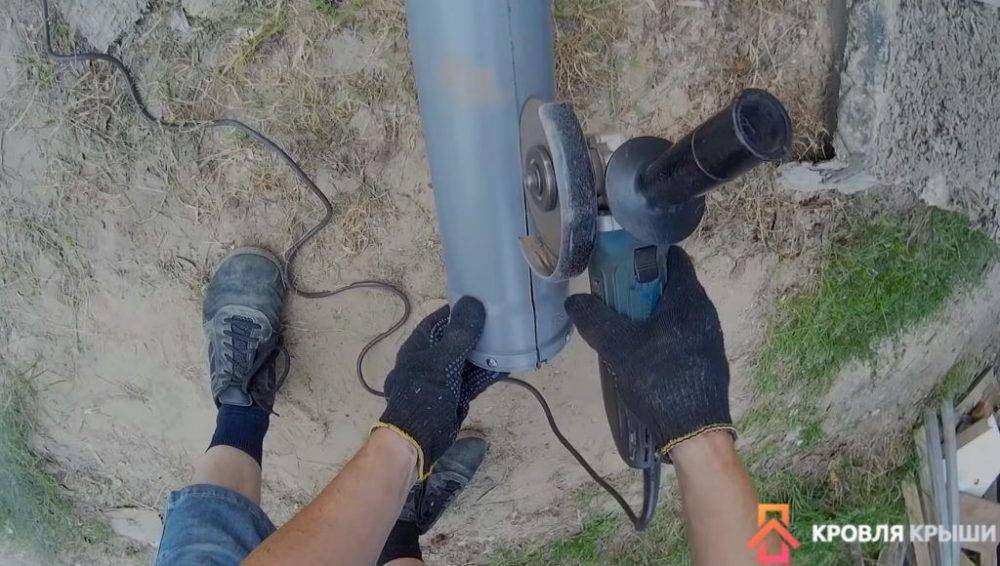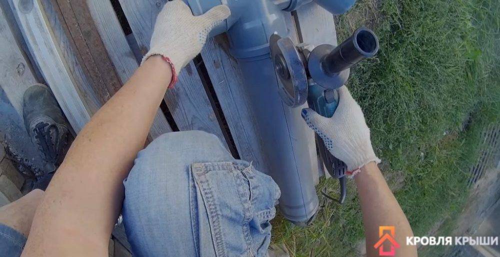 - Если в желобе необходимо сделать отверстие под воронку, то нужное место размечают карандашом и при помощи ножовки вырезают отверстие. С помощью клещей воронке придают необходимую форму, а заусенцы удаляют. Место среза металла обрабатывают специальной краской для предотвращения коррозии.