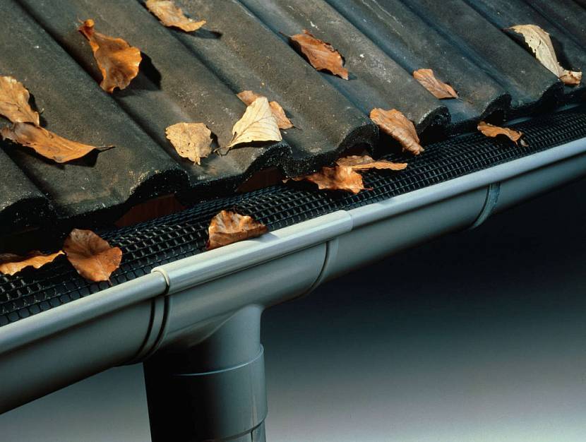 Защитная сетка водостока внутри желобовИсточник realmi-ural.ru