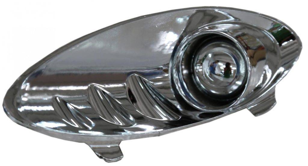 Это один из наиболее простых вариантов восстановления хрома на отражателях фар автомобиля. В таком случае используется серебристая краска с кусочками хрома. Предварительная подготовка – это чистка и мойка детали, и последующее ее обезжиривание, например антисиликоном. Наносят краску с аэрозольного баллончика, в несколько слоев, с периодом сушки 10 – 15 минут. После окончательного высыхания детали ее монтируют обратно в фару. Купить такую краску вы можете в любом ближайшем автомобильном магазине совсем не дорого. Срок службы покрытия будет зависеть от герметичности фары и условий эксплуатации машины.