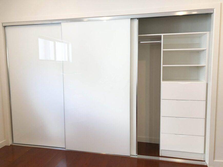 Купейный встроенный шкаф станет дороже из-за более современной системы открывания, за которой требуется постоянный уход. Чтобы пыль и грязь не скапливалась в ходовых частях, их нужно постоянно пылесосить, чистить.