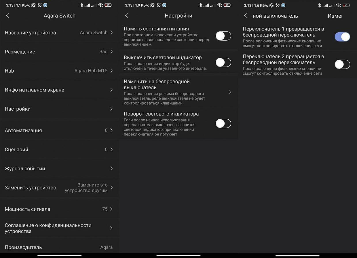 Напомню, что вместо обычных позиционных переключателей в линейке Aqara H1 используются кнопки с одинарным нажатием. Таким образом, физическое размыкание контактов электропроводки происходит в реле. Как и всё прочее управление.