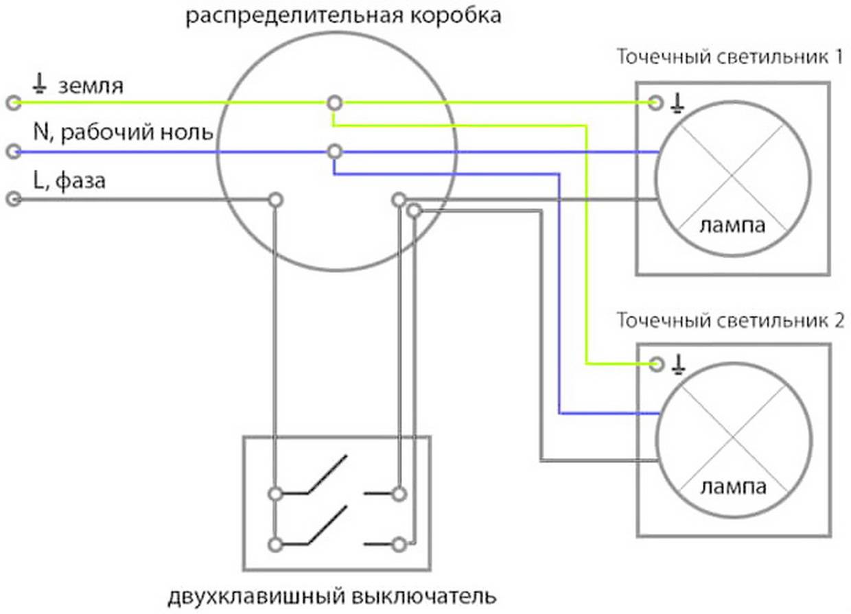 Варианты на 1 и 2 клавиши отличаются только числом подключаемых светильников, то есть числом выходов и соответствующих им клавиш. Входов для фазы и нуля ровно по одному.
