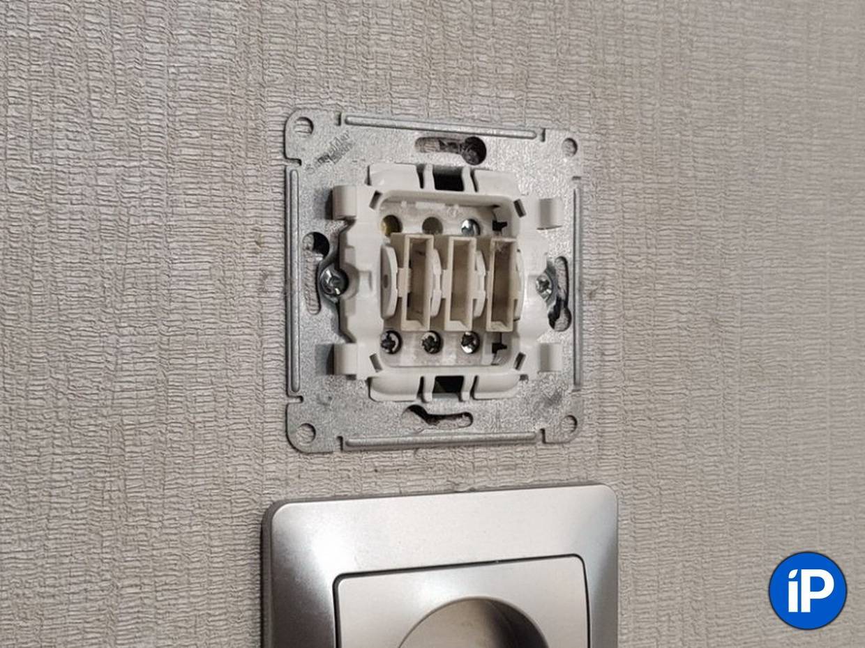 Конечно, для ванной мне всё-таки пришлось заказать проводной выключатель (кстати, тоже от Aqara). Это было вынужденное решение, потому что он у меня используется для запуска принудительной вытяжки. Однако это единственное помещение, где не используется решение без проводов. Правда, полезное знание я вынес и из этого: для проводных выключателей Aqara обязательно нужен квадратный подрозетник, а не круглый, как у нас.