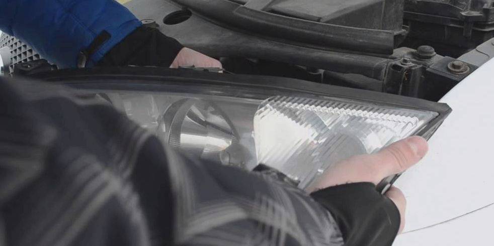 До герметизации фар с новыми стеклами мы для начала возвращаем обе фары на автомобиль для регулировки света: необходимо отрегулировать новые линзы относительно горизонта, добившись тем самым ровной светотеневой границы